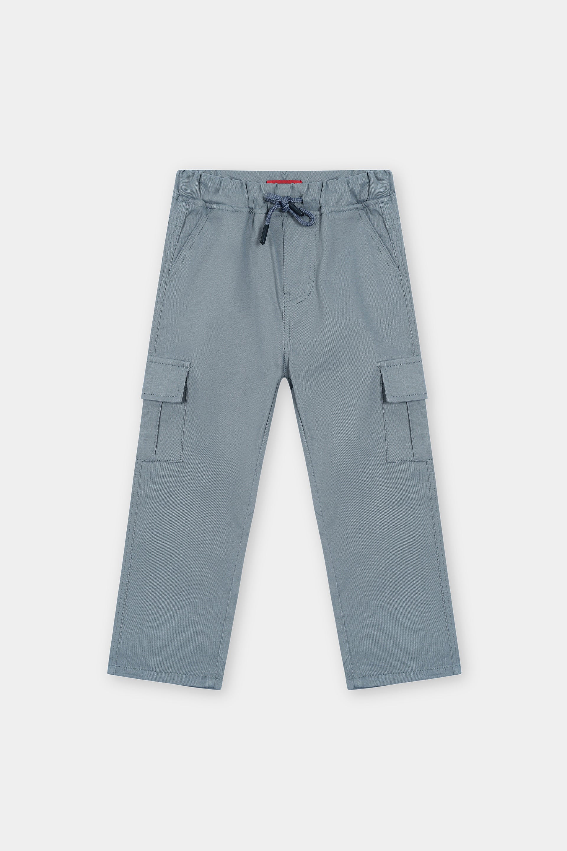 Boys Gray Cotton 6 Pocket Cargo Trouser