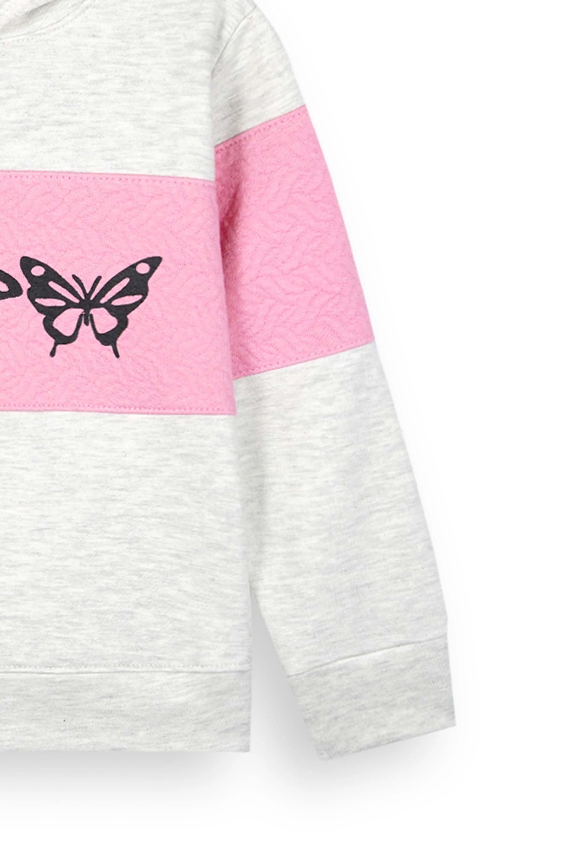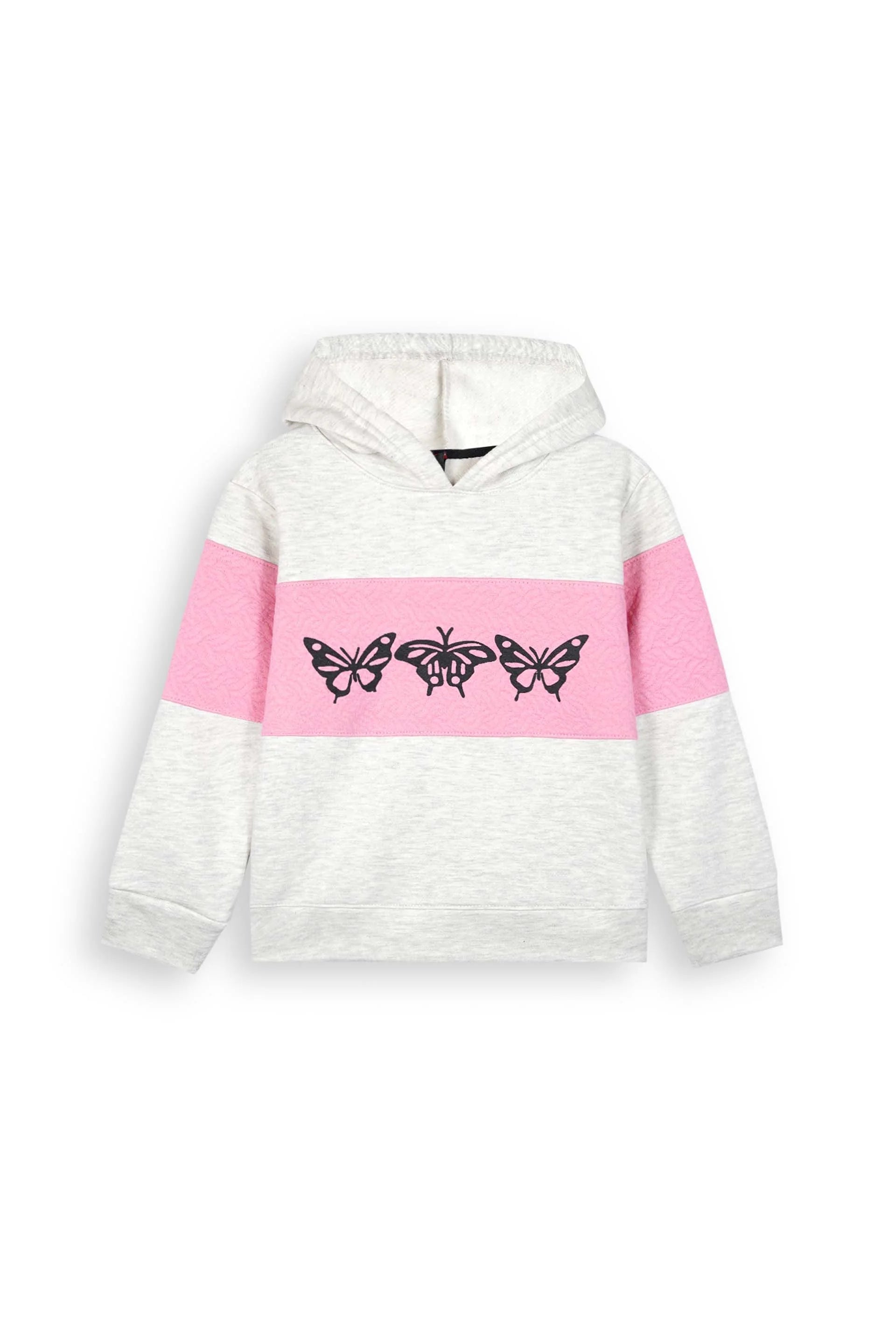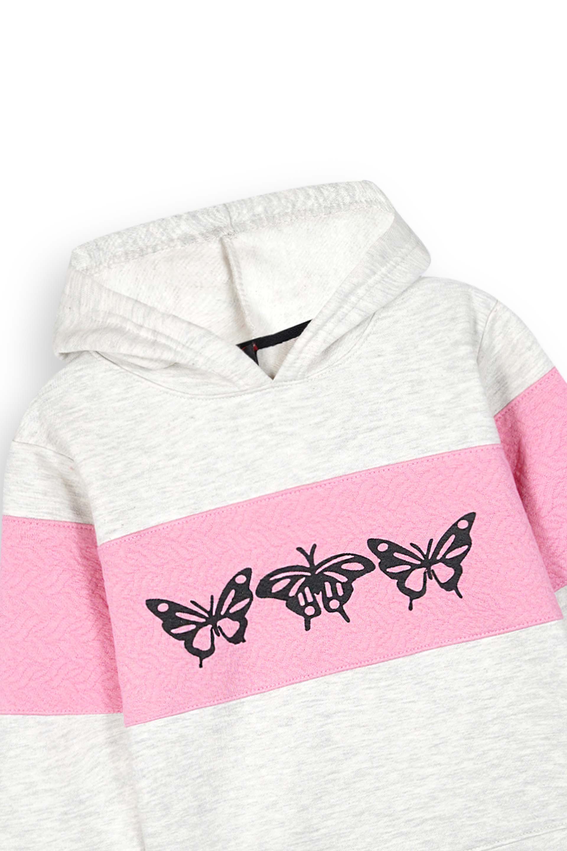 Keep your little one cozy and stylish this winter with our Butterfly Love Tracksuit — a perfect blend of comfort and cuteness. Crafted from 100% cotton fleece, this warm outfit feels soft on the skin while offering superior insulation during chilly days. The hoodie features a pink quilted fabric panel across the chest and sleeves, highlighted with adorable butterfly prints, adding a playful and trendy touch. The matching jogger pants have pink quilted side panels, an elastic waistband, and cuffed hems for a perfect fit.