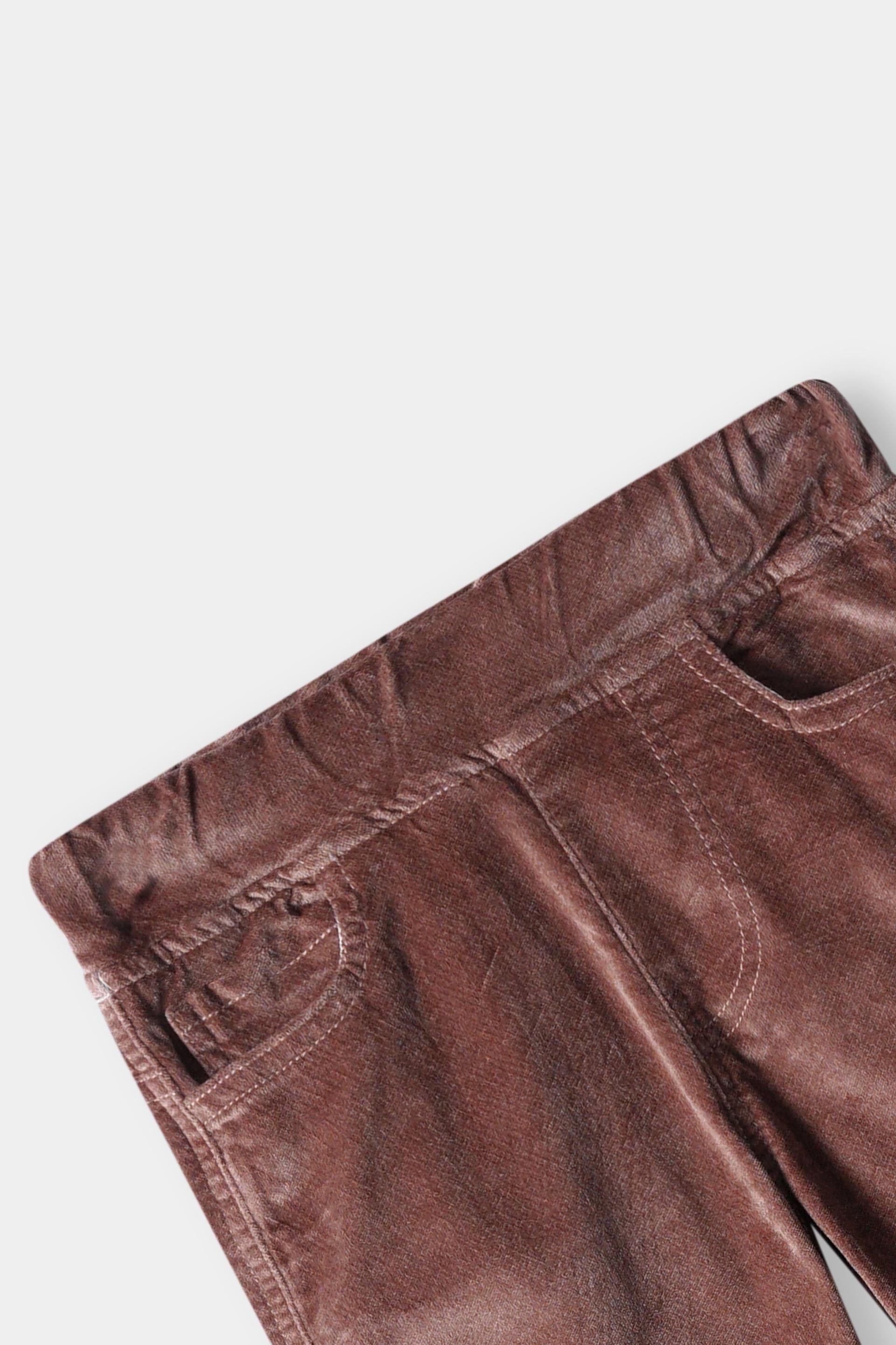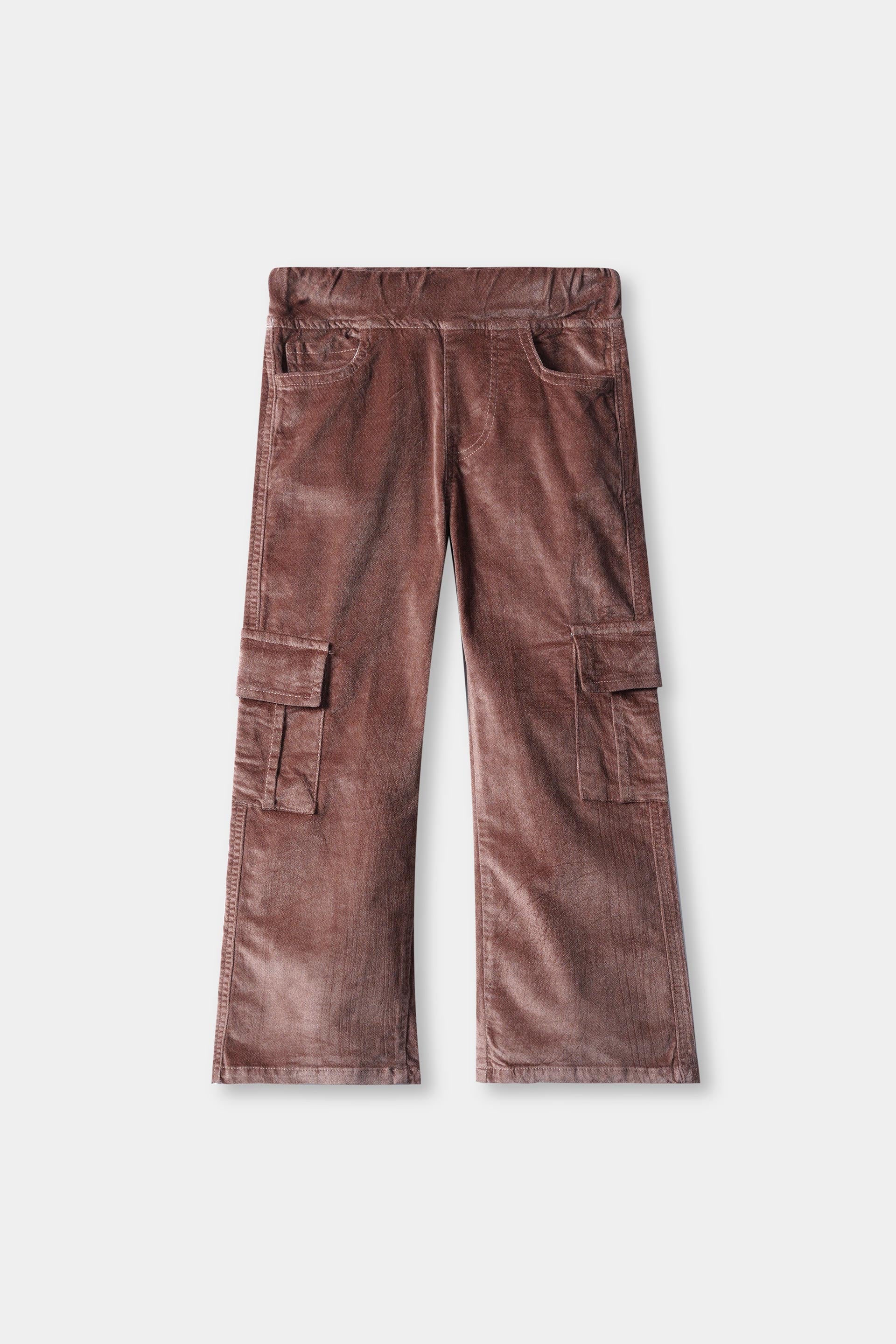 Girls Wide Leg Golden Brown Velvet Six Pocket Trouser