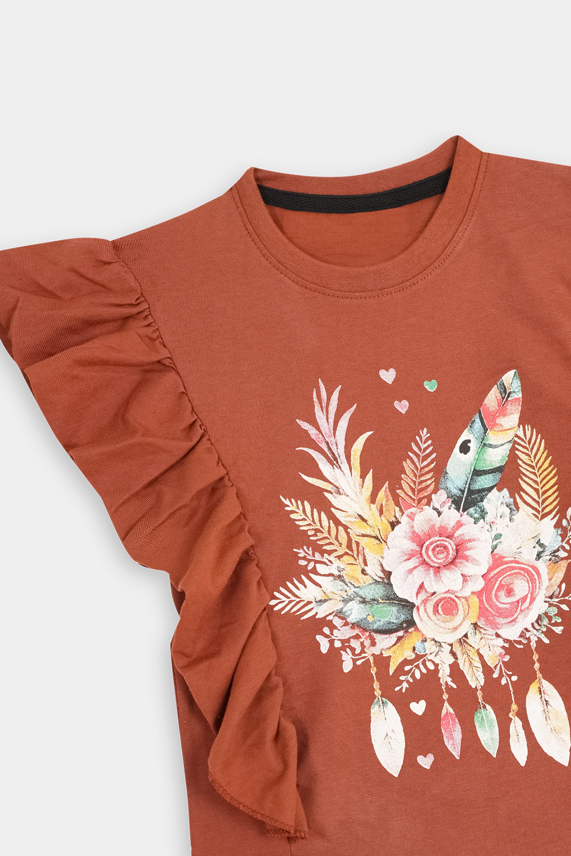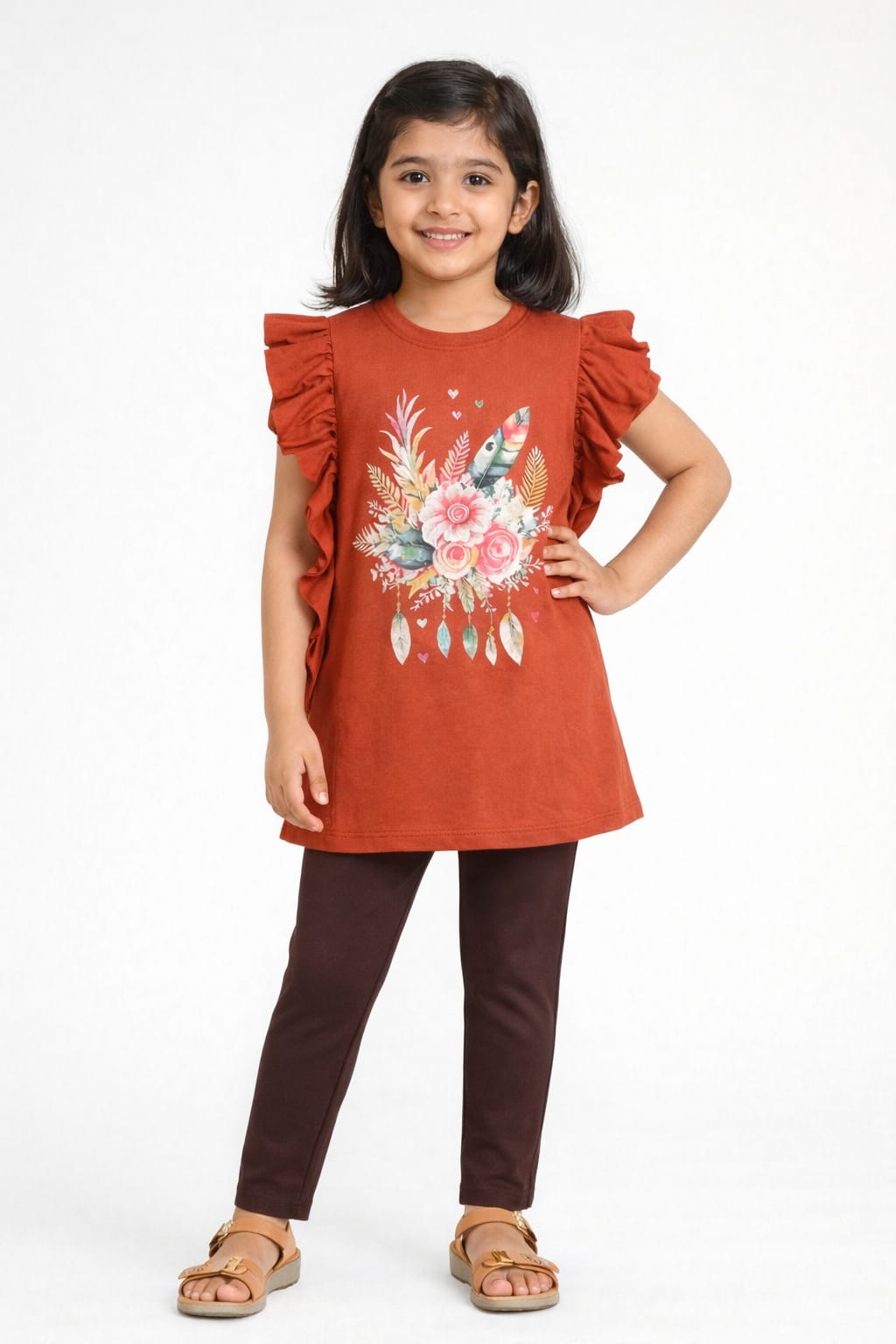 Girls Light Brown Flare Flower Tee