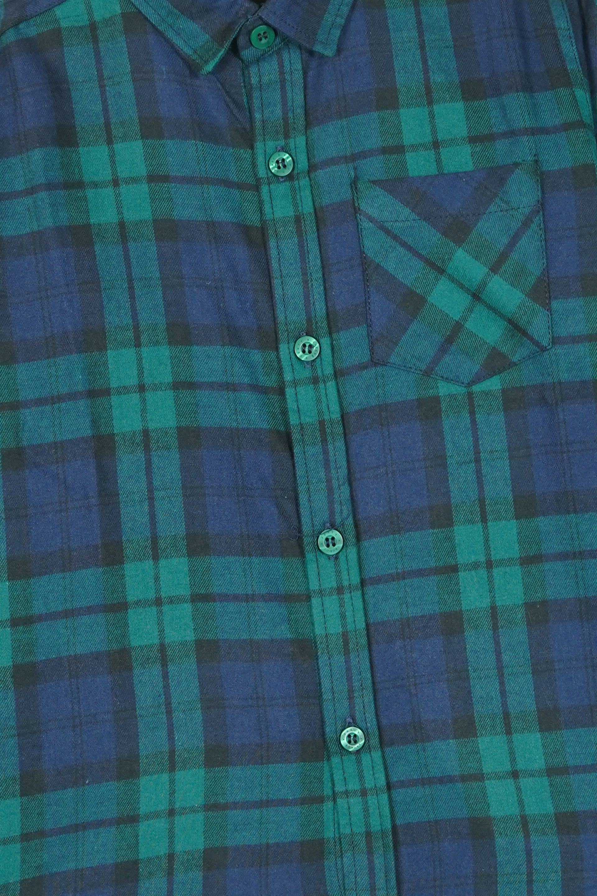 Crafted from lightweight, breathable Flannel, this shirt keeps kids warm and comfortable, making it perfect for everyday wear, school, or weekend outings. The vibrant Blue Green plaid pattern delivers a playful yet classic look that pairs easily with jeans, chinos, or shorts.