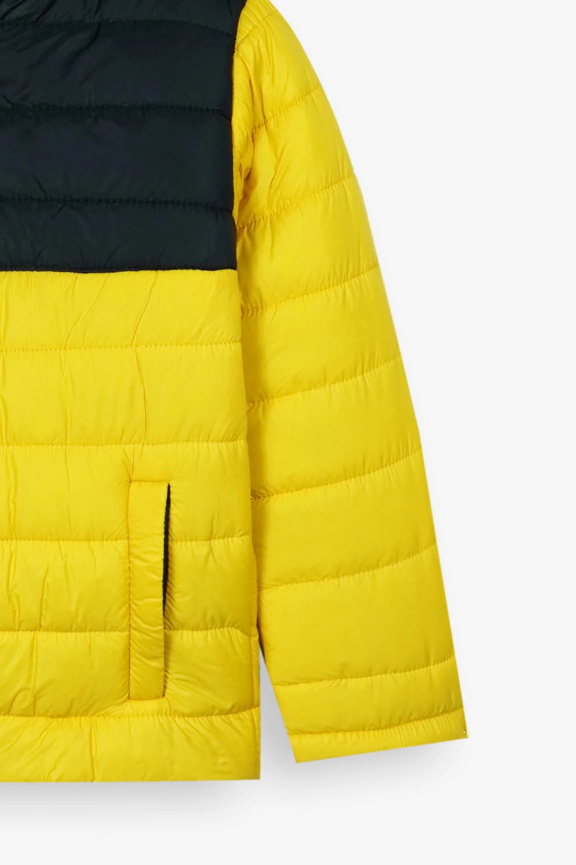 Keep your child warm and stylish this season with our Kids Yellow & Black Puffer Jacket, featuring a trendy color-block design. Crafted with lightweight insulated padding, this hooded winter coat ensures maximum comfort and warmth during chilly pre-winter and winter days without feeling heavy.