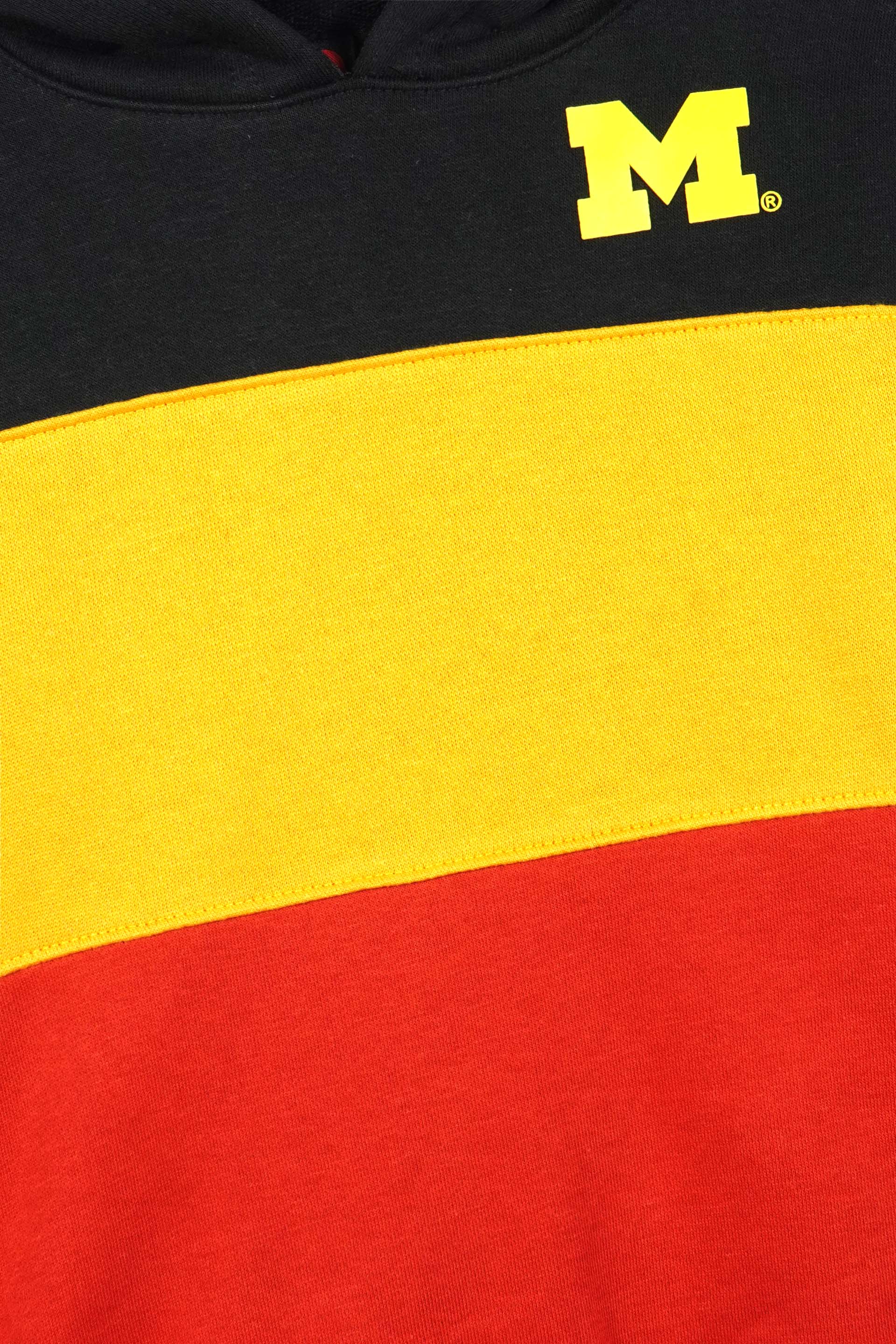 The hoodie features a pullover style with a roomy hood for added coverage and ribbed cuffs and hem to keep the cold out. A standout yellow “M” chest emblem adds a sporty, playful touch that makes this hoodie ideal for both casual outings and everyday wear.