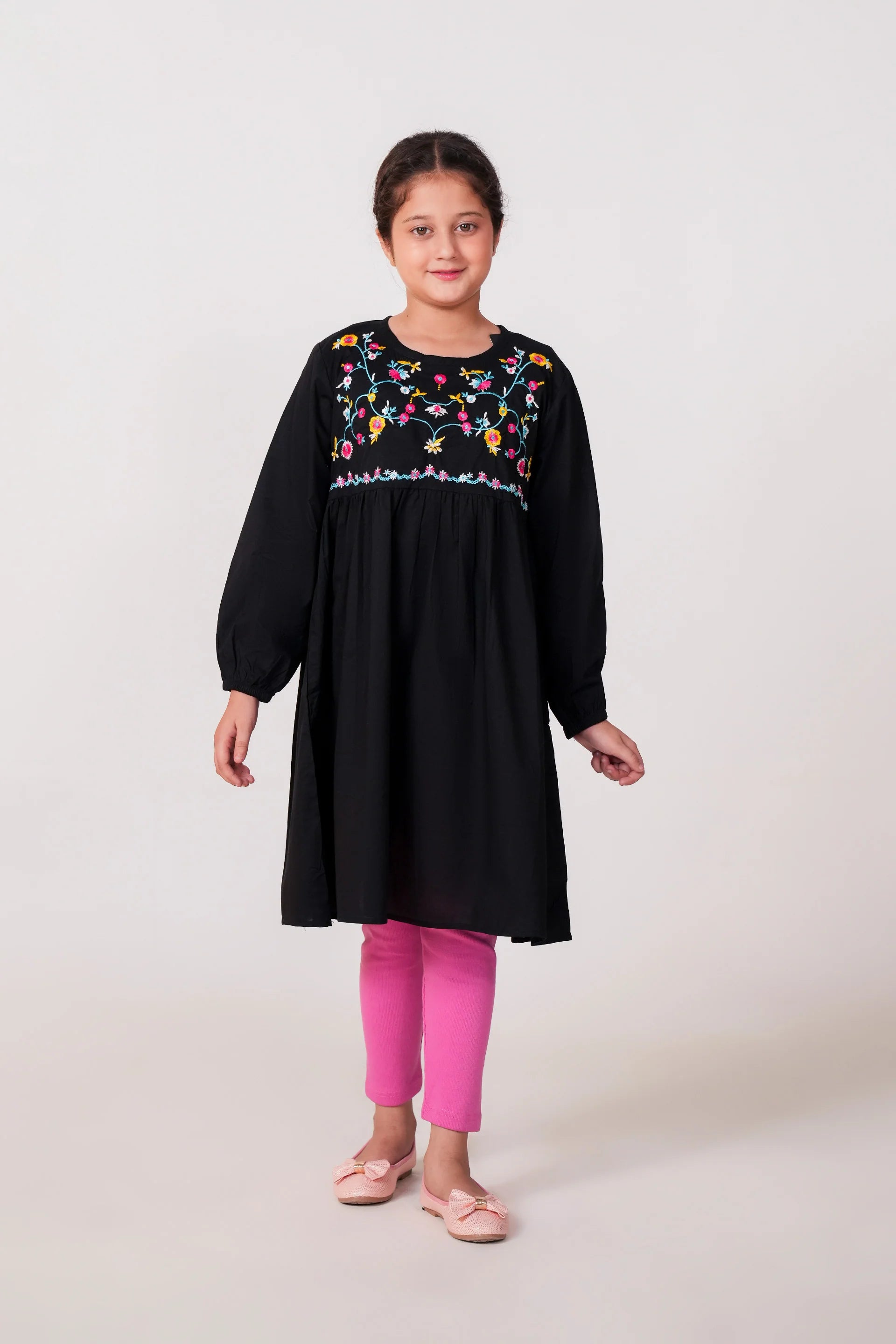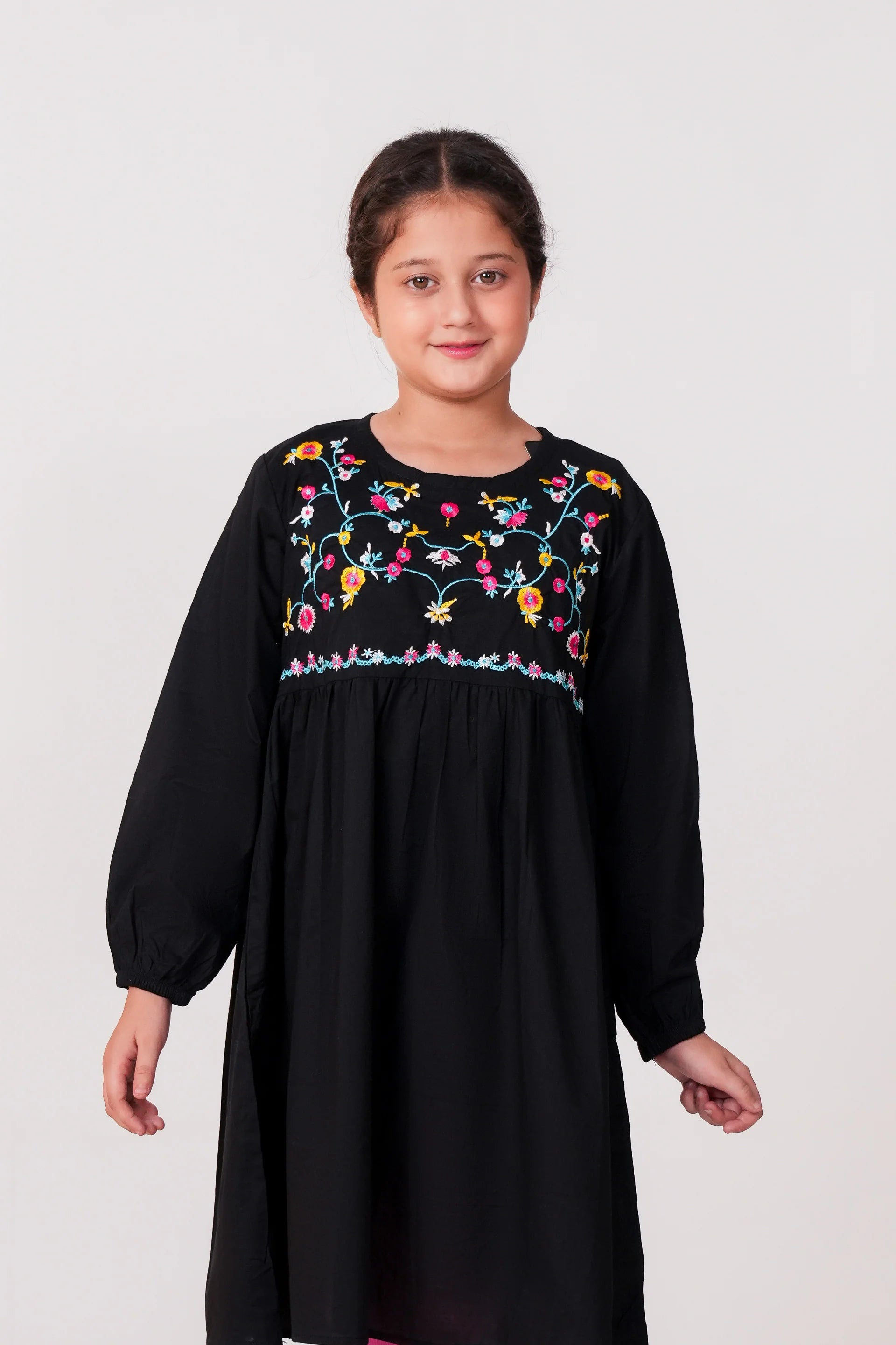 Bring a touch of vibrant charm to your child’s wardrobe with this 100% cotton Top, featuring intricate multi-head embroidery that makes every detail stand out.